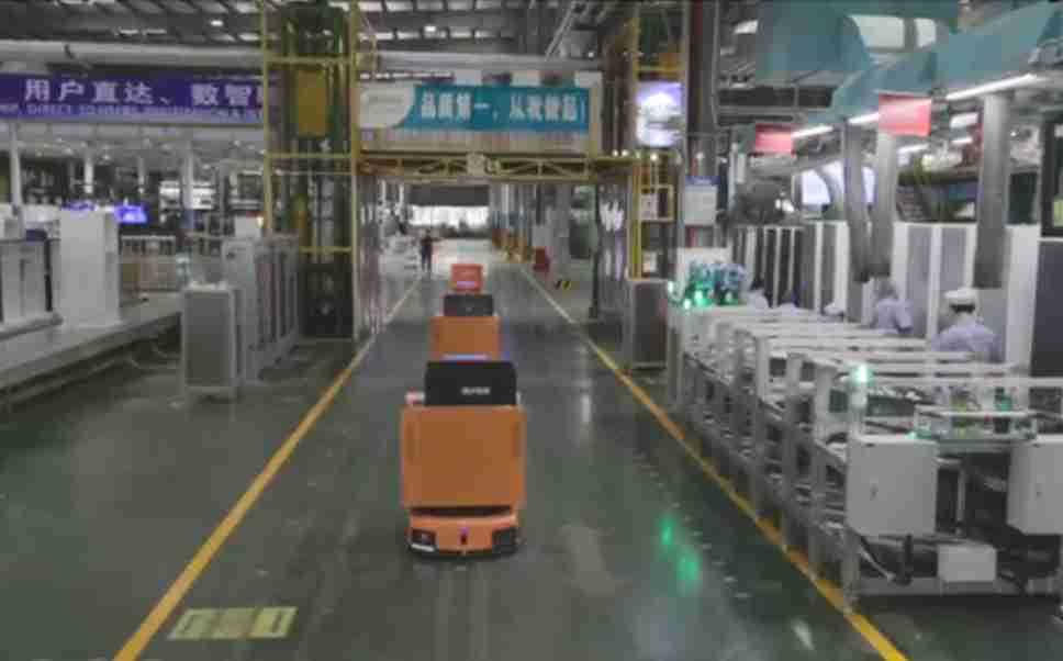 为车载冰箱物流配送打造的智能解决方案,,,包含产中物流通过潜伏举升AMR搬运至线边,,产后成品物流智能仓储,,流程包含产中物流智能齐套入库,,,线边安灯叫料AMR智能配送至线边,,,成品入库、、出库,,,,通过无人堆高车机器人,,,智能仓储管理替代人工作业管理,,实现更高存储、、更高效率、、、、更具柔性化的解决方案。。。。
